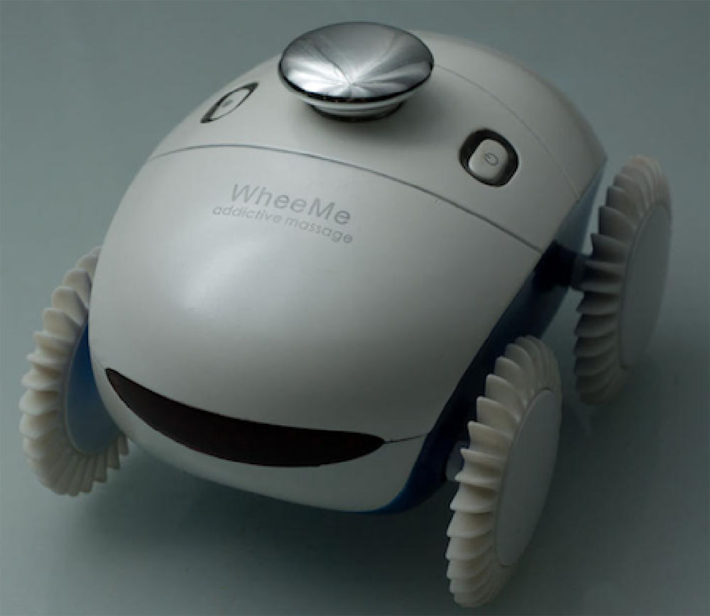WheeMe - это робот размером с ладонь, который делает мягкий массаж. WheeMe не может делать глубокий массаж тканей, так как он очень легкий. Внешне он похож на автомобиль: у него есть четыре колеса с шипами, с помощью которых он делает массаж.