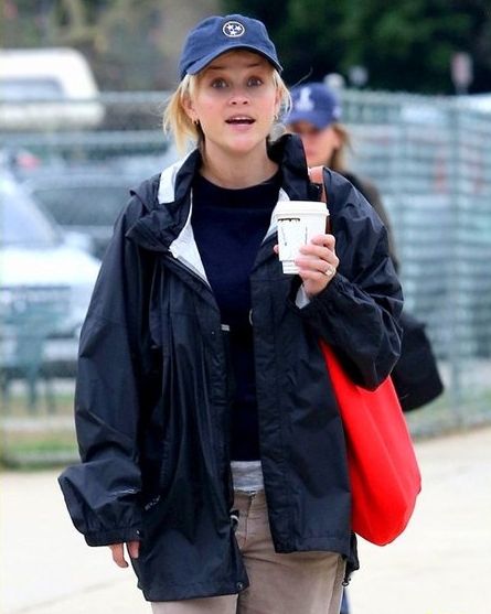 Актриса, была одета по-спортивному: кроссовки, брючки, футболка, объемная куртка и бейсболка, однако даже без ослепительных нарядов Риз выглядела прекрасно.