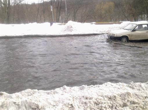 Днем 26 марта было зафиксировано первое подтопление на улицах Киева вследствие таяния снега.