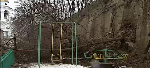 В центре Киева с Замковой горы оползнем порвало провода и завалило детскую площадку.