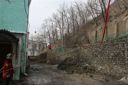 Вслед за Замковой горой поплыла и Лысая: неподалеку от станции метро "Выдубичи" на Столичном шоссе с горы вниз поползли тонны грунта, остановившиеся возле железнодорожного полотна. Бороться с оползнем решили, насыпав "барьер" из щебня. Оползни появились также рядом с Выдубицким монастырем и на Парковой дороге.
