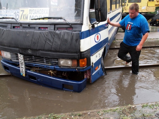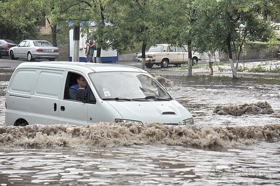 Затопило ряд улиц, город остановился в огромных пробках.