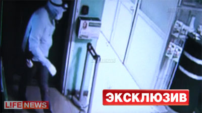 На кадрах видеосъемки, оказавшейся в распоряжении Life News, видно, как злоумышленник, одетый в белую куртку с наброшенным на голову капюшоном, в половине второго ночи открывает дверь в банк. Проходившая мимо пара при этом не обратила на грабителя никакого внимания.