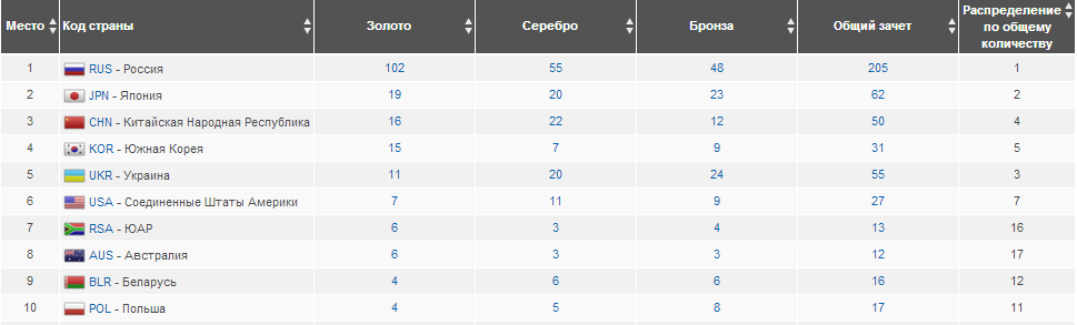 Несмотря на сегодняшний успех, наша студенческая сборная остается на пятой строчке в общекомандном рейтинге. В активе украинцев - 11 золотых, 20 серебряных и 24 бронзовых медали.