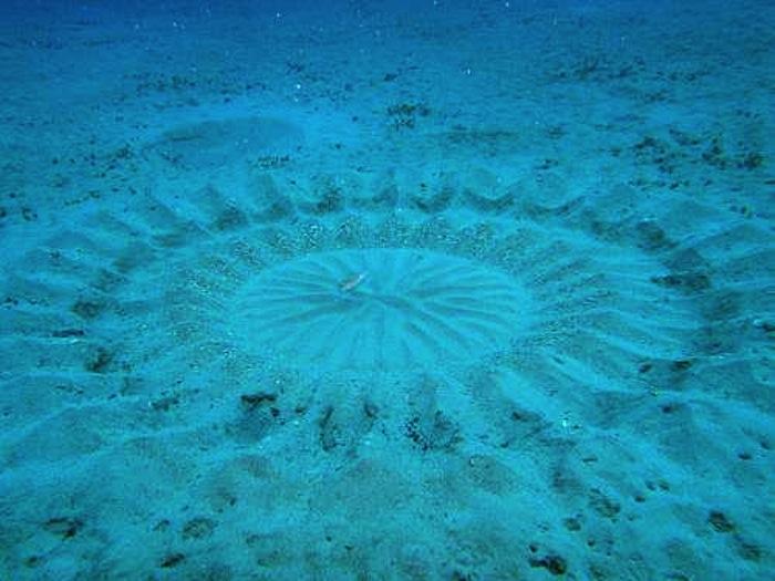 Теперь же ученые нашли создателей кругов: ими оказались рыбы фугу нового вида, передает Globalscience. Ряд исследований показал, что маленькие рыбки фугу, принадлежащие к семейству иглобрюхих (Tetraodontidae), создают столь искусный орнамент, чтобы привлечь самок в брачный период. Самцы усердно работают плавниками, скользя по морскому дну, и взрыхляют осадочный слой, образуя таким образом удивительные узоры, диаметр которых составляет около двух метров.