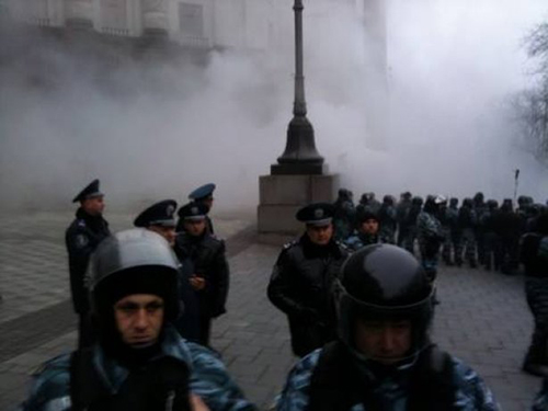 После наступления темноты правоохранители окружили палаточный лагерь митингующих на углу улиц Шелковичной и Богомольца. Немного ранее милиция перекрыла автобусами улицу Грушевского практически от Европейской площади до Арсенальной площади. Три палатки митингующих на углу Крепостного переулка и ул. Институтской заблокированы несколькими сотнями бойцов внутренних войск в шлемах и со щитами.
