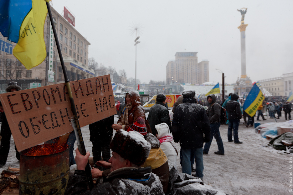 Митингующие стоят в очередях на получение еды и чая и продолжают греться возле металлических бочек с огнем, передает УНИАН.