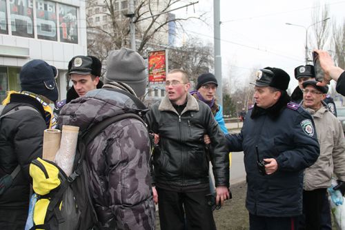 Организаторами шествия "Марш справедливости" выступили представители ВО "Свобода". На троллейбусной остановке "Студенческий городок" по улице Артема трое неизвестных начали метать яйца в колонну активистов, но им не удалось в кого-либо попасть. Одного из хулиганов удалось догнать. Его передали милиционерам с требованием срочно оформить протокол.