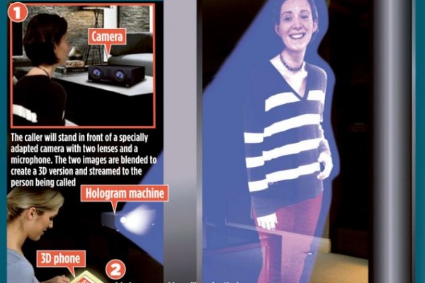 Так вот, с помощью новых телефонов, которые появятся уже в следующем году, «голографическая фантастика» превратится в реальность. Чтобы сделать 3D-звонок, нужно будет сесть перед специально оборудованной камерой с двумя линзами, которые будут передавать два изображения, и микрофоном. После смешивания этих изображений появится 3D-версия человека, и будет транслироваться через Интернет. Таким образом, говорящая, двигающаяся и слушающая в режиме реального времени голограмма уже не будет фантастикой.