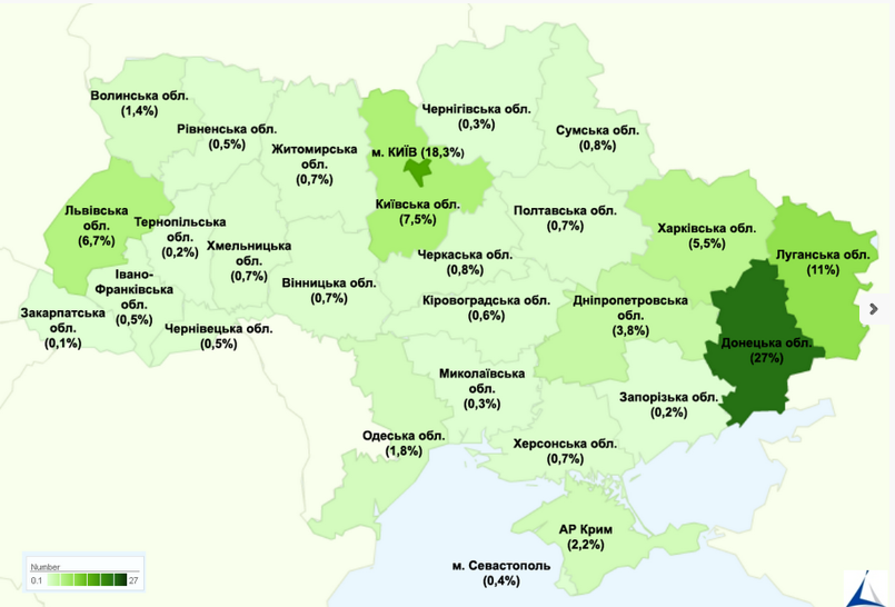 Представители Лаборатории законодательных инициатив отметили, что в прошлом году три региона — Киев, Донецкая и Луганская области — получили 56% от всего объема 31,2 миллиардов гривен субсидий и трансфертов.