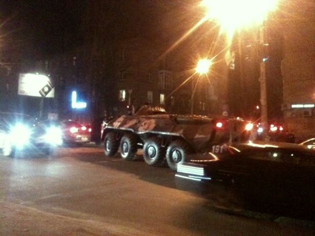 На Крещатике подожгли БТР
