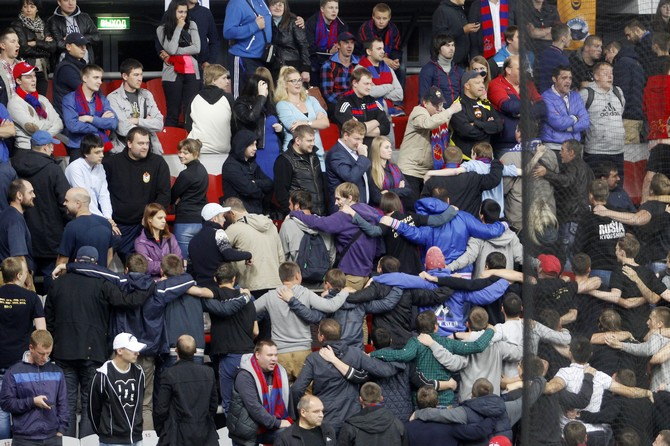 Фанаты, посетившие накануне матч регулярного чемпионата КХЛ между ЦСКА и «Спартаком» (2:1), поддержали участников протестов на украинском Майдане.
