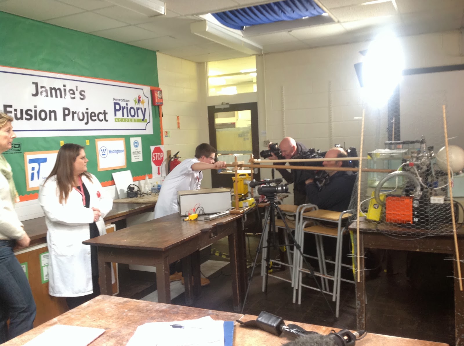 Во время работы над своим проектом, Эдвардс вел онлайн-блог. Ученик с улыбкой замечает, что его учителя начали волноваться, как только увидели как в школу доставили канистру с дейтерием (так же известным, как тяжелый водород).