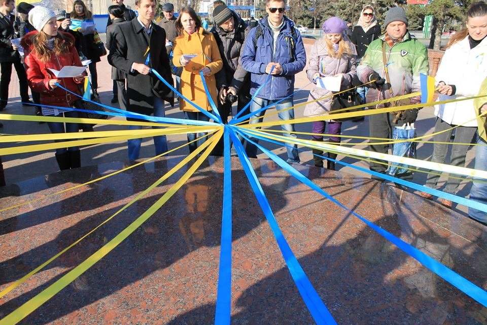 "Наша акция направлена против безразличия людей. Видимых военных действий нет, и народ перестает интересоваться ситуацией, - пояснила одна из организаторов акции Юлия. - Майдан хочет изменить систему сознания людей, чтобы они начали думать о том, где они живут, как живут, что делают... Поэтому мы хотим привлечь внимание ко всем нынешним событиям, чтобы харьковчане не забывали о том, что происходит, и что здесь Украина, а не Россия".