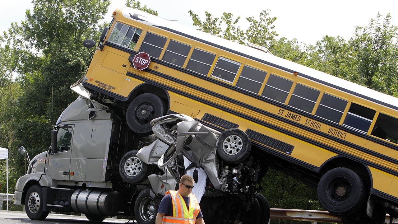 В США грузовик протаранил школьный автобус