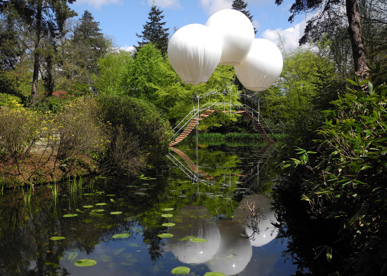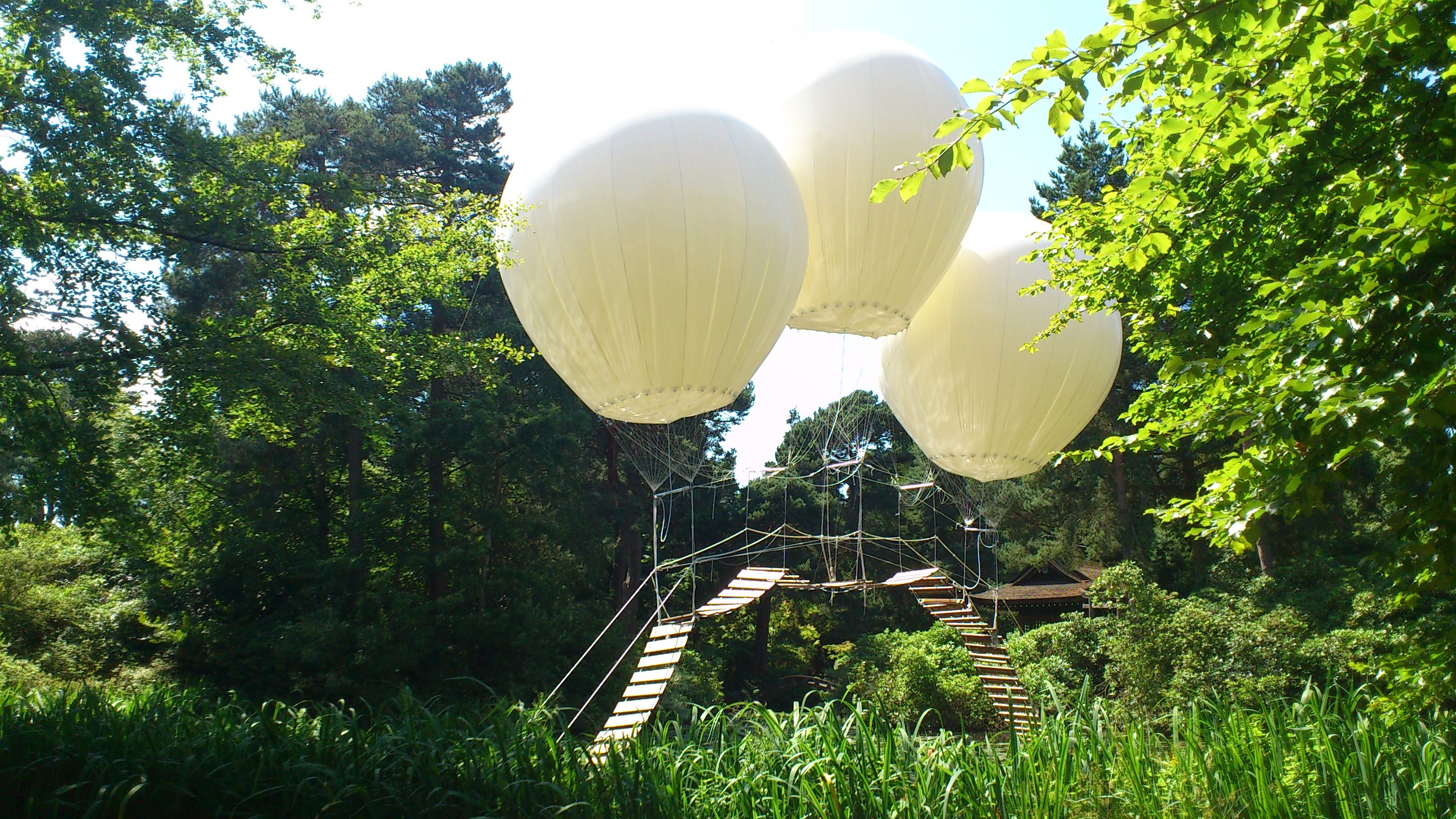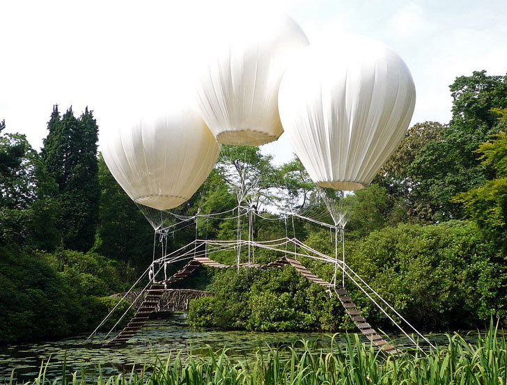 Хотя, его опыт очень пригодился французскому дизайнеру Olivier Grossetete, который создал уникальный подвесной мост в Tatton Park. В отличие от стандартных конструкций, «Pont de Singe» удерживают над поверхностью воды три воздушных шара, накачанных гелем. Уравновешивает мост несколько мешков с песком, привязанных к нижней части подвесного строения.