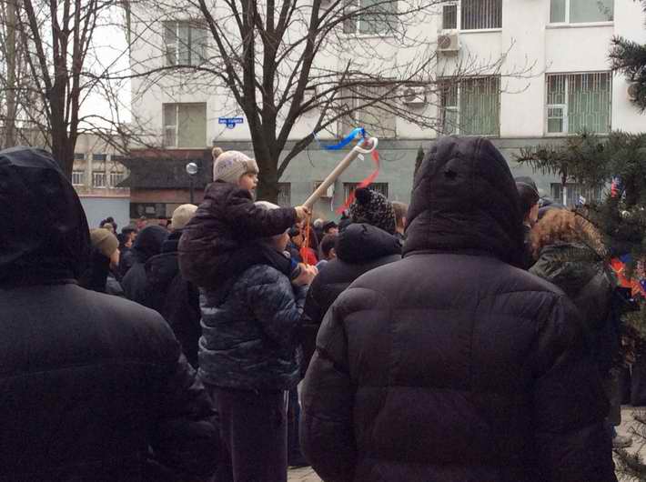 Участникам митинга, который проходил в городе (около 500 человек), террористы предложили вооружаться захваченной в милиции оружием, чем те сейчас и занимаются.
