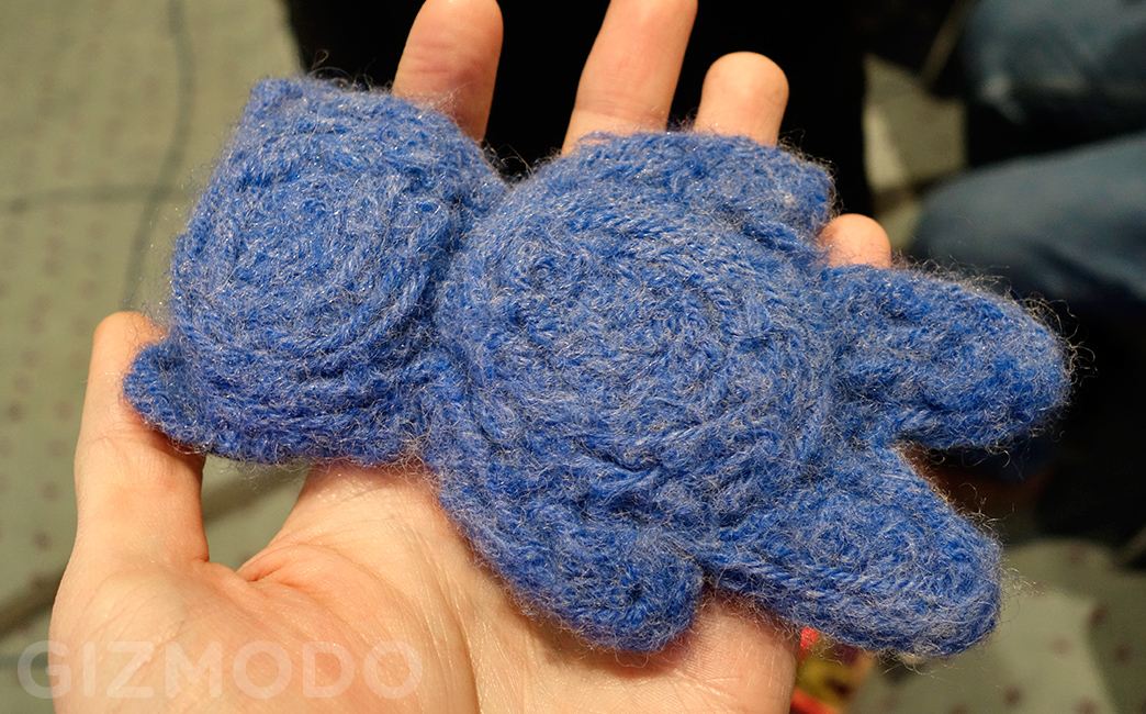 В результате игрушка похожа скорее на поделку первоклассника, однако следует учесть, что высокотехнологичная 3D-печатная машина — это вам не какой-нибудь ткацкий станок. Сутью метода валяния является использование иглы для многократного протыкания и перепутывания между собой волокон нити войлока, и таким образом наслоение каждой последующей нити на новый слой.