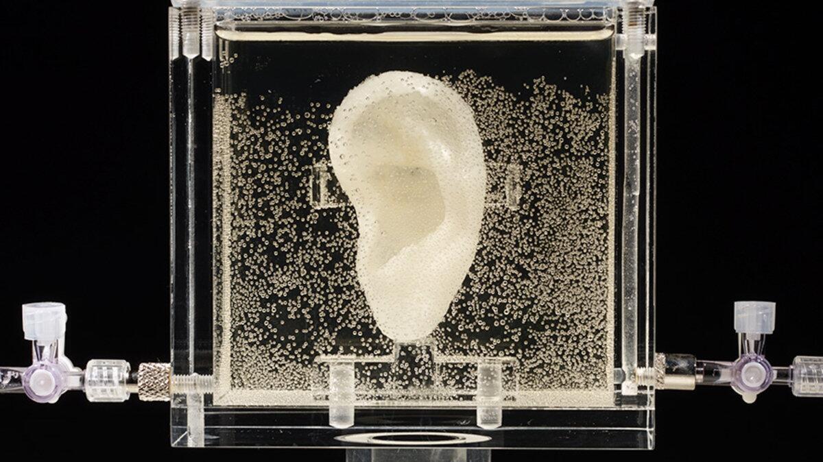 Автором инсталляции стал Димут Штребе. Немецкий художник утверждает, что использует вместо кисти науку. Он надеется, что ухо, помещенное в питательный раствор, «проживет» долго.
