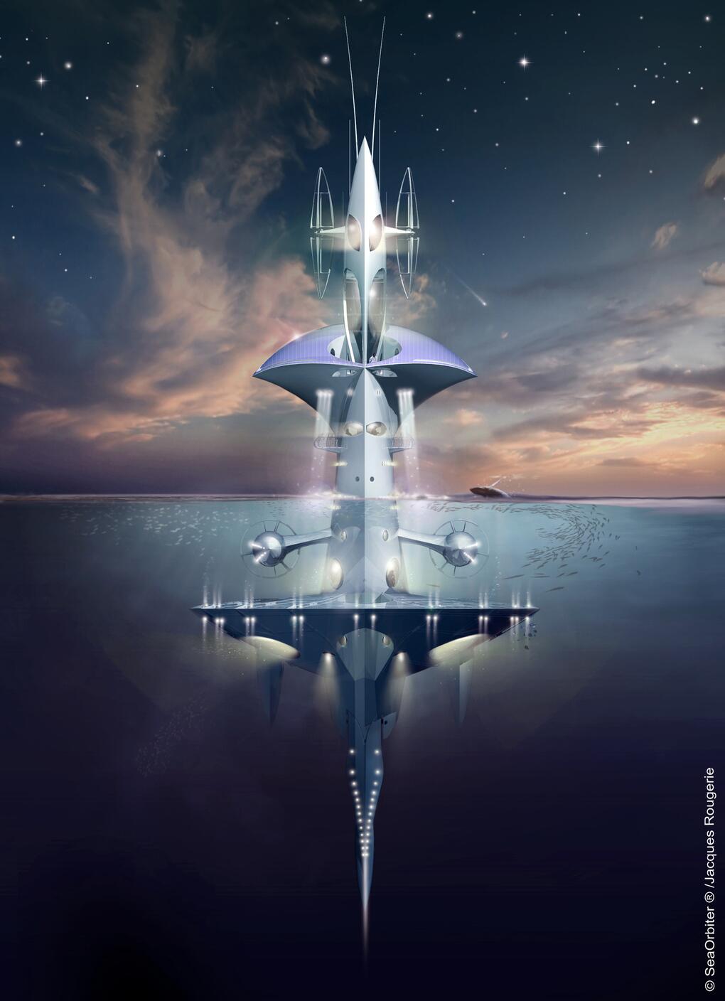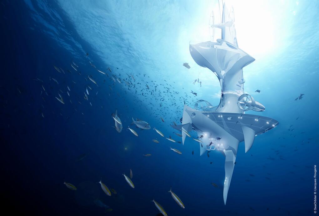 Французский архитектор и океанограф Жак Ружери потратил 30 лет своей жизни на исследование привычек подводного мира и даже запустил по такому случаю свою собственную компанию по исследованию океанских глубин. Однако его самый любимый проект еще более амбициозен, чем все то, чем он занимался. Вдохновившись рассказами Жюля Верна и в частности его научно-фантастическим романом «Двадцать тысяч лье под водой», Ружери создал концепт «Морского орбитера» (SeaOrbiter), морской лаборатории высотой 58 метров, одновременно напоминающей космический корабль и футуристическую подводную лодку.