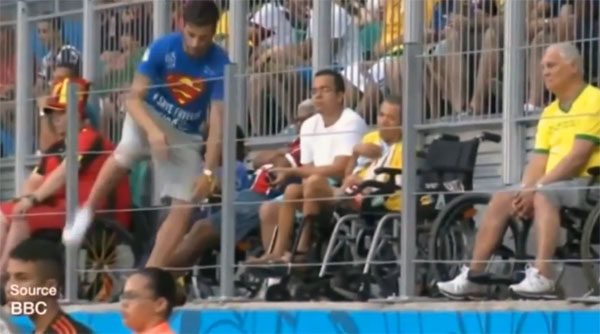 В выбежавшем на поле болельщике не было бы ничего удивительного, если бы не одна деталь. Дело в том, что болельщик, который выбежал на поле во время матча, выпрыгнул прямо из инвалидного кресла.