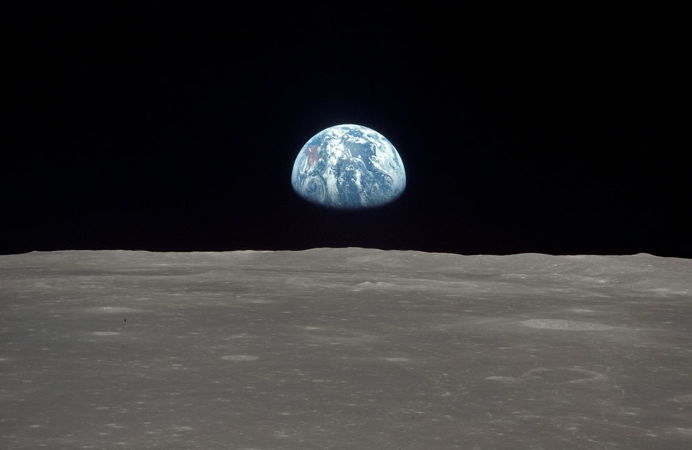 9. Вид с “Аполлона-11″. Земля поднимается над лунным горизонтом