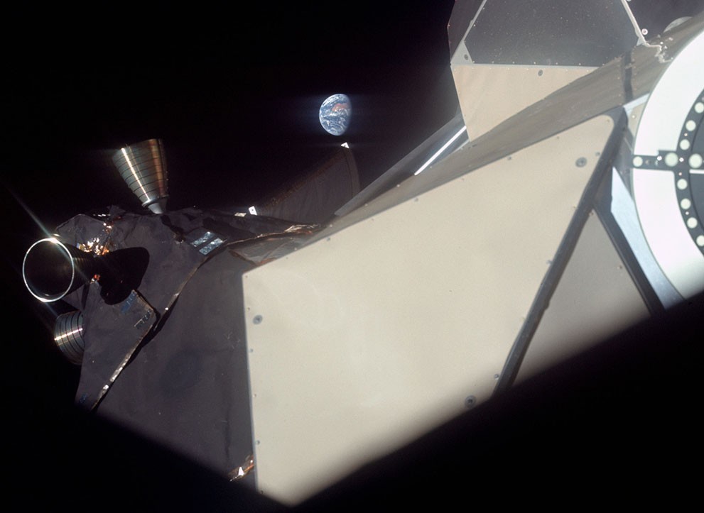 7. Вид лунного модуля и Земли во время трехдневного полета до Луны