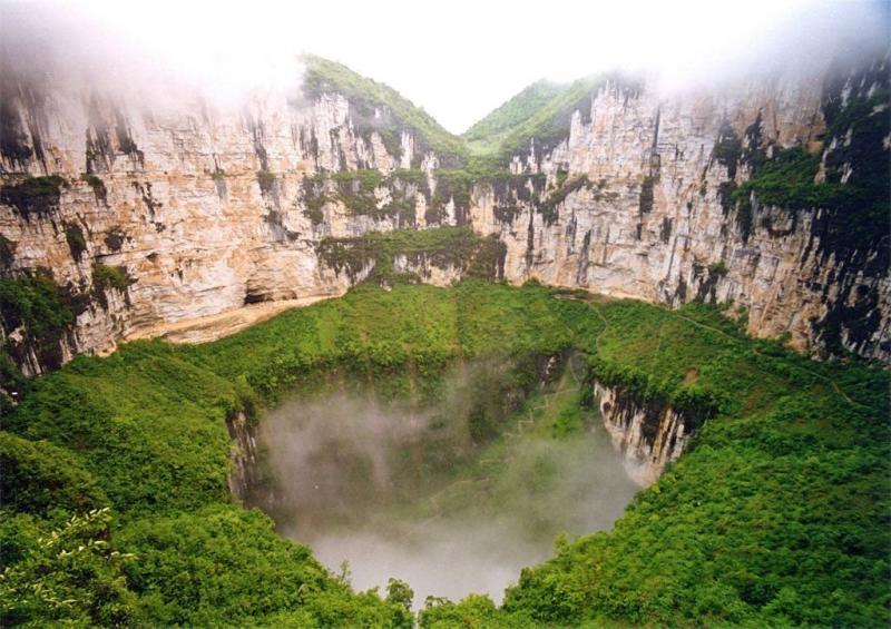 Небесная яма – карстовая воронка в Китае, расположенная в районе Чунцин. Это двойной провал, который имеет размеры 662 метра в глубину, 626 метров в длину и 537 в ширину; верхняя его «чаша» уходит вглубь на 320 метров, а нижняя – еще на 342. Такая огромная впадина, конечно, не появилась за одну ночь, а образовывалась постепенно в течение 128 тысяч лет. Она настолько большая, что ее часто посещают экстремалы, которые хотят получить всплеск адреналина, спрыгнув вниз с огромной высоты с парашютом или на веревке.