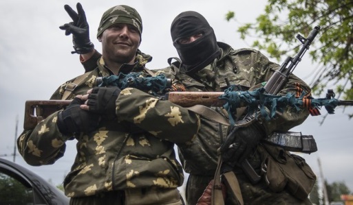 Боевики ДНР под давлением со стороны бойцов Нацгвардии вынуждены отступать и обороняться в жилых домах простых жителей города. Тех, кто препятствует террористам, избивают и силой отбирают ключи.