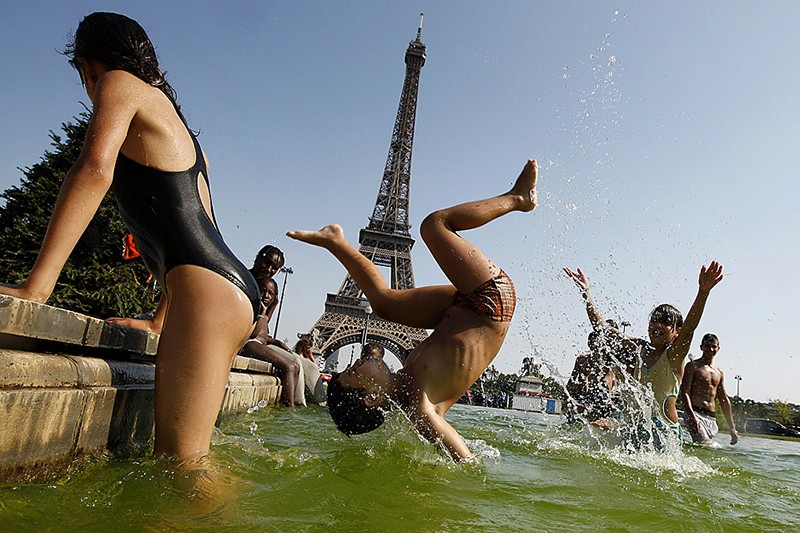 9. А китайцы предпочитают освежаться в городских бассейнах. Впрочем купаться им там не удается, зато не жарко.