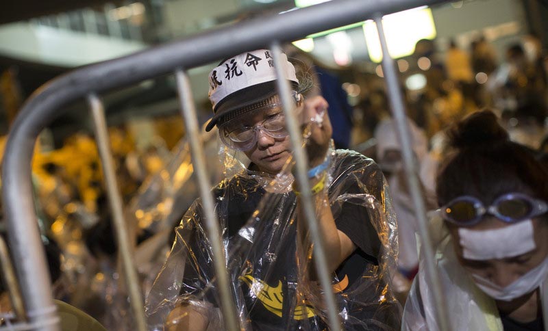 Утром в четверг, 2 октября, сотни протестующих студентов блокировали здание администрации Гонконга.