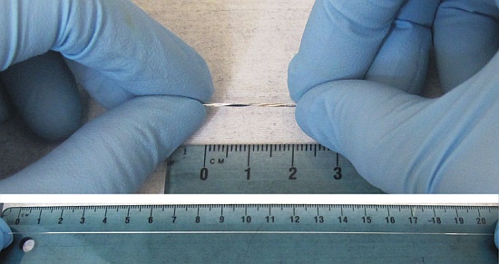 Исследователи из университета Северной Каролины (США) создали провода, способные растягиваться до восьми раз от первоначальной длины и восстанавливать исходные размеры. Их можно повторно вытягивать и сгибать, при этом они сохраняют свои свойства — смотрите видео.