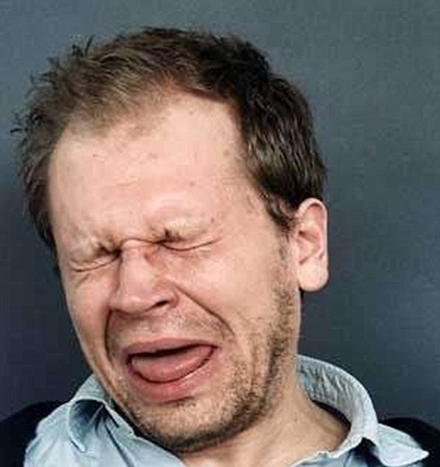 Некоторые людей, как видно на фото, пытаются сдерживаться, в то время как другие забрызгивают слюной камеру, а их лицо демонстрирует причудливые формы.