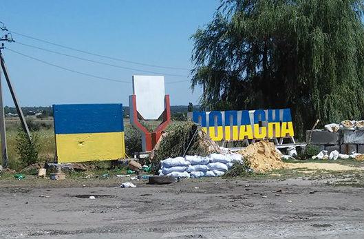 Сообщается, что в Станице Луганской в результате обстрела террористов был разбит кран, который укреплял блокпост украинских военнослужащих.