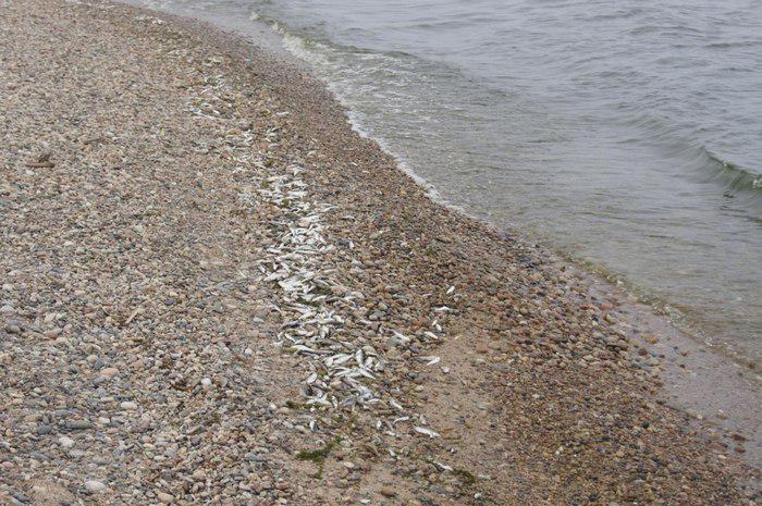 На утро на берегу были обнаружены тонны малька. Но, что интересно, чайки и другие птицы и животные отказываются есть эту рыбу, она так и гниет на берегу.