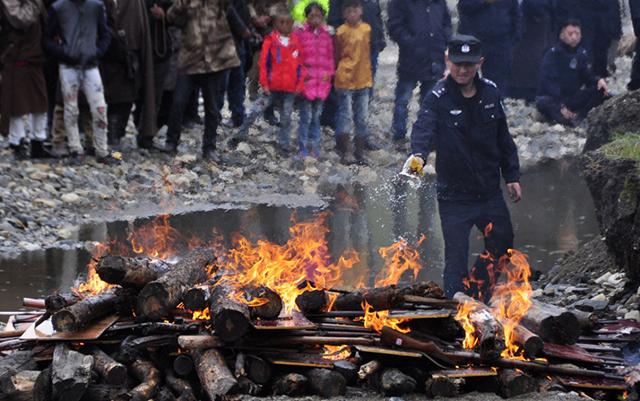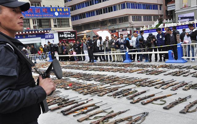 Начиная с 2011 года, кроме огнестрельного оружия, полиция Гардзе-Тибетского автономного округа изъяла более 133 тысяч пуль, 18 тонн взрывчатки, более 180 тысяч детонаторов, около 30 километров огнепроводного шнура и более 2500 единиц холодного оружия.Читайте также: В России предложили сжигать нелегальные шубыВ Китае владение любыми видами огнестрельного оружия, за исключением охотничьего запрещено. Наказание за нелегальное владение оружием составляет от трех лет тюремного заключения до смертной казни.