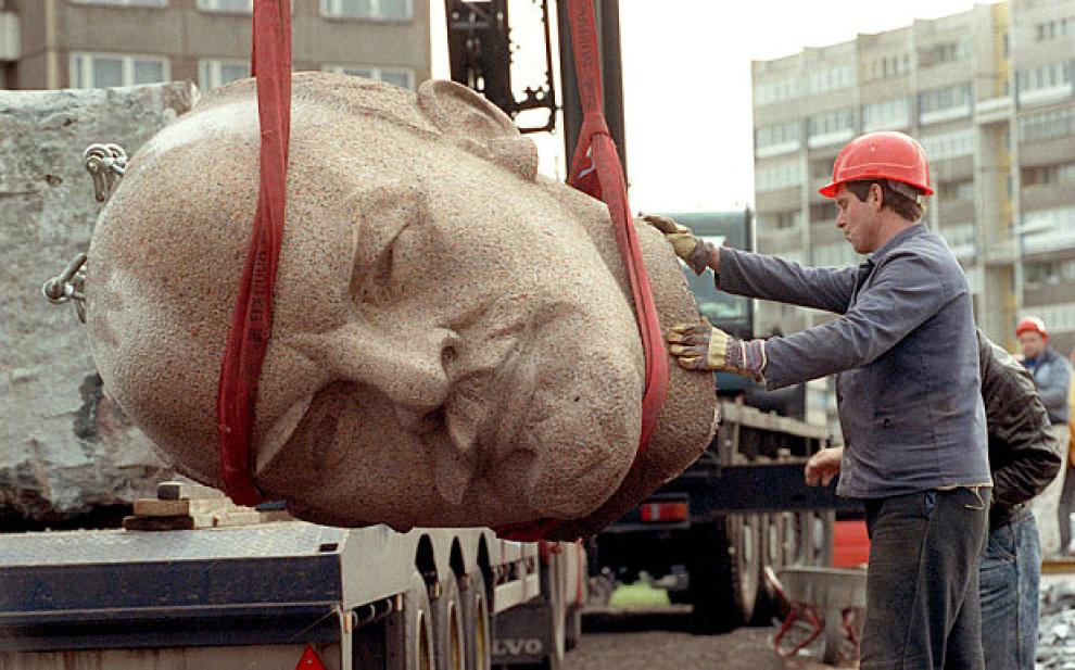 Ленинская голова — один из 129 фрагментов, на которые 25 лет назад во время "бархатной революции", окончившейся объединением Германии, был распилен монумент. До этого 19-метровый памятник 40 лет стоял на одноименной площади в Восточном Берлине.