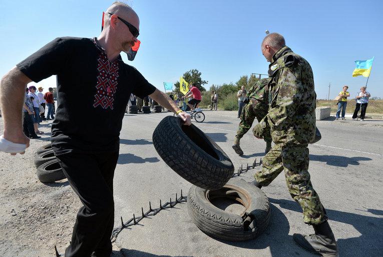 Напомним, в настоящее время радикально настроенные активисты полностью блокируют все пункты пропуска из Украины в Крым. В районе таможенных постов образовалась многокилометровая пробка из грузовиков.