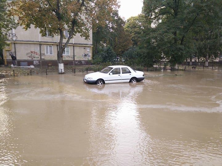 Автор фотографий с юмором прокомментировал фотоснимки: "Открытие отопительного сезона на Борщаговке. Плавает весь микрорайон".