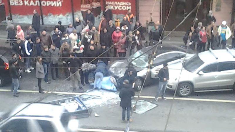В Санкт-Петербурге машина протаранила автобусную остановку (ВИДЕО)