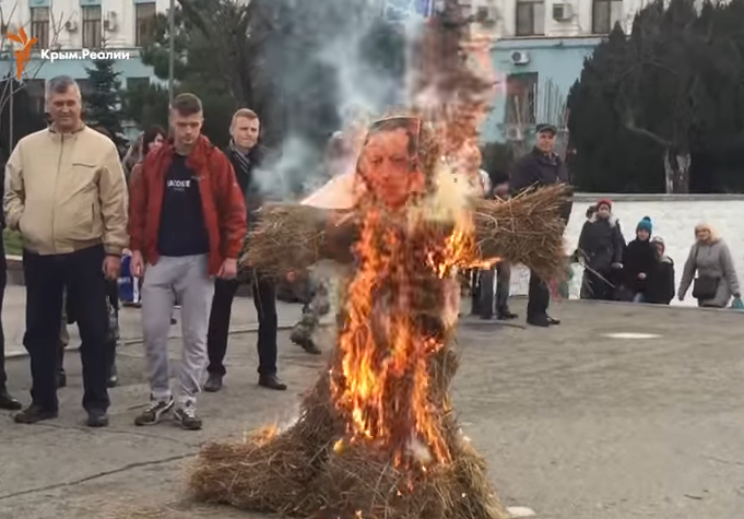 В Симферополе сожгли чучело президента Турции (ВИДЕО)