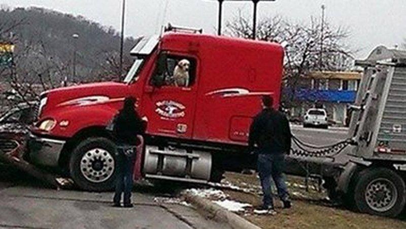 Причиной аварии (фура врезалась в легковой автомобиль и дерево), стала собака, находившаяся на момент происшествия за рулём грузовика. Как именно лабрадору-ретриверу удалось завести машину и отправиться на ней в путь, до сих пор не очень понятно.