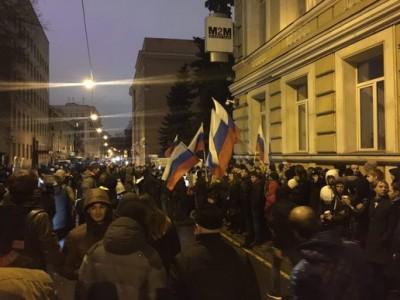 Около посольства Украины в Москве собрались больше 300 сотен человек, которые скандируют "Фашизм не пройдет" и "Руки прочь от наших дипломатов", а также забрасывают здание яйцами и помидорами. Это стало своеобразным ответом на акцию около здания российского посольства в Киеве, которую шестого марта провели украинские активисты в поддержку Надежды Савченко. Митинг жителей Москвы начался около 21:30 по местному времени.