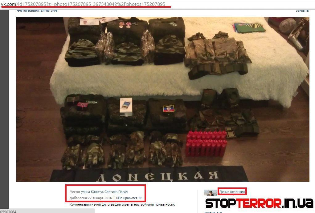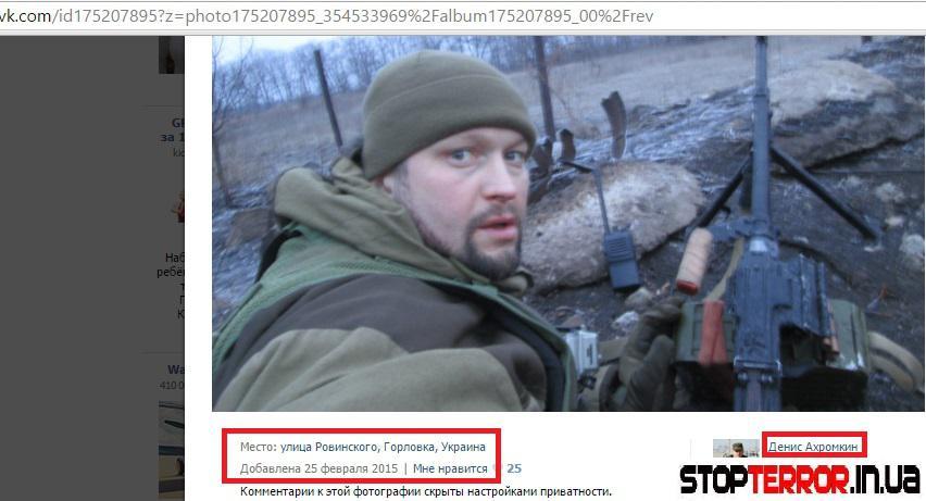 Некоторые снимки имеют также географическую привязку, свидетельствующую о пребывании Ахромкина на территории Украины.
