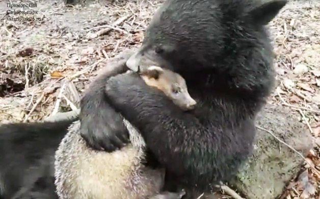 В Приморском сафари-парке медведь подружился с барсуком (ВИДЕО)