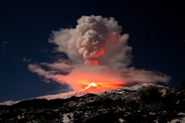 Последнее мощное извержение вулкана Этна датировано декабрем прошлого года. Из центрального кратера был выброшен на километровую высоту фонтан лавы. А образовавшийся в ходе извержения пепел поднялся на три километра над кратером.