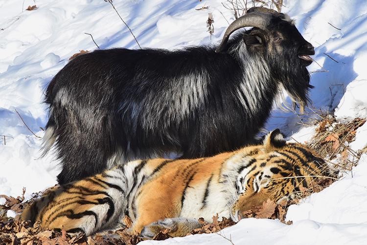 «Тигр Амур просто не стал есть козла Тимура, так как был не голоден. Поскольку он не стал его есть, я попросила сотрудников парка накормить Амура, чтобы он не стал есть Тимура. Вот так мы продержались два месяца», — рассказала Патановская.