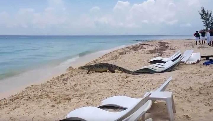 Огромный крокодил напугал туристов на пляже Карибского острова