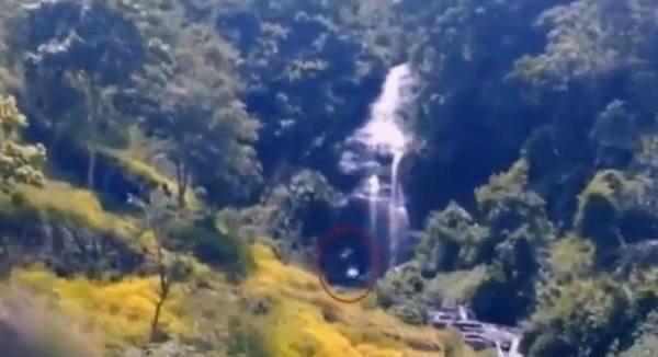 На кадрах существо проходит под водопадом и скрывается в зелени.