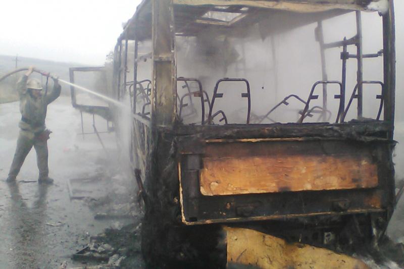 Сообщается, что водитель транспортного средства, почувствовав запах дыма из моторного отсека, сразу высадил пассажиров. Потушить возгорание водителю не удалось. Пламя охватило весь салон автобуса.